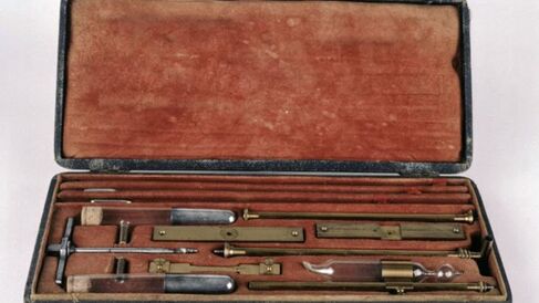 Wet and dry bulb hygrometers, like the one above made by Fastre Aine in 1851, were more reliable than condensation hygrometers for measuring air humidity. First developed in 1755 by William Cullen (1710-1790) and Joseph Black (1728-1799), wet and dry bulb hygrometers measured humidity based on the evaporation of water.